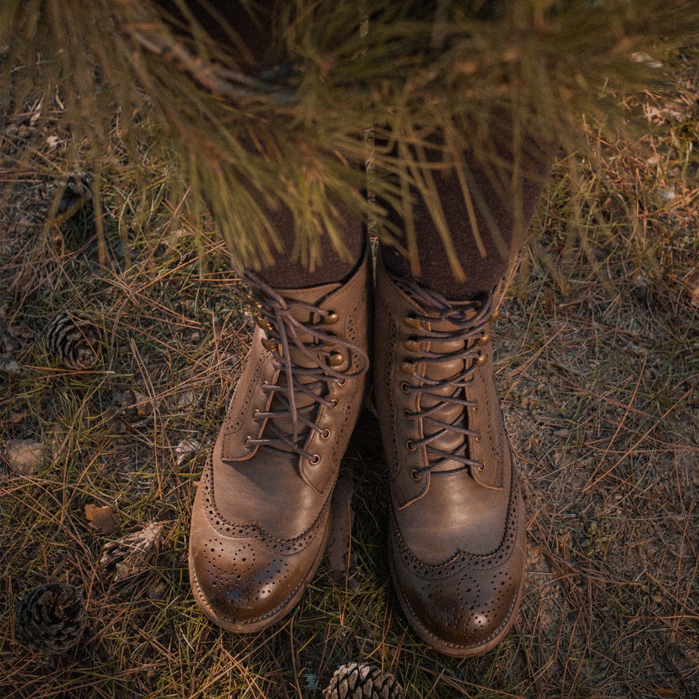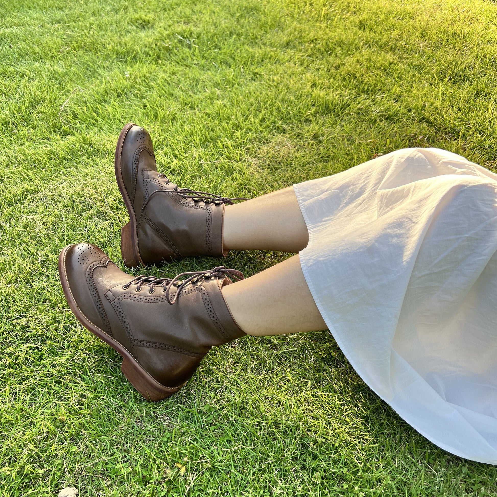 This Dwarves combat boots feather brogue vamp and rivet buttons. This pair of combat boots use extremely soft cowhide leather and mid calf heel, available in coffee and black color. The Upper And Insole Are All Made Of Top Layer Soft Leather, Flexible And Comfortable. Natural Rubber Sole Comfortable, Safe And Anti-skid. Original Design, Hand-Cut, Pointed Toe, Lace Up, Block Carving With A Strong Touch Of Retro Style. Wearing Your Unique Beauty.